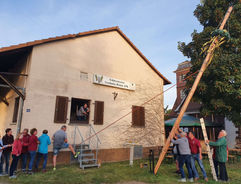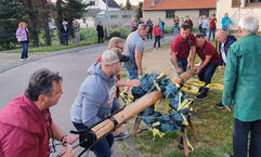 Um 18:30 Uhr hatten sich einige kräftige Frauen und Männer sowie interessierte Beobachter eingefunden. Mit Unterstützung gekühlter Getränke und leckerem Essen war die Aufgabe schnell vollbracht. Dies besonders durch die hervorragende Vorarbeit und Konstruktion von Siegmund Ulitzka.
